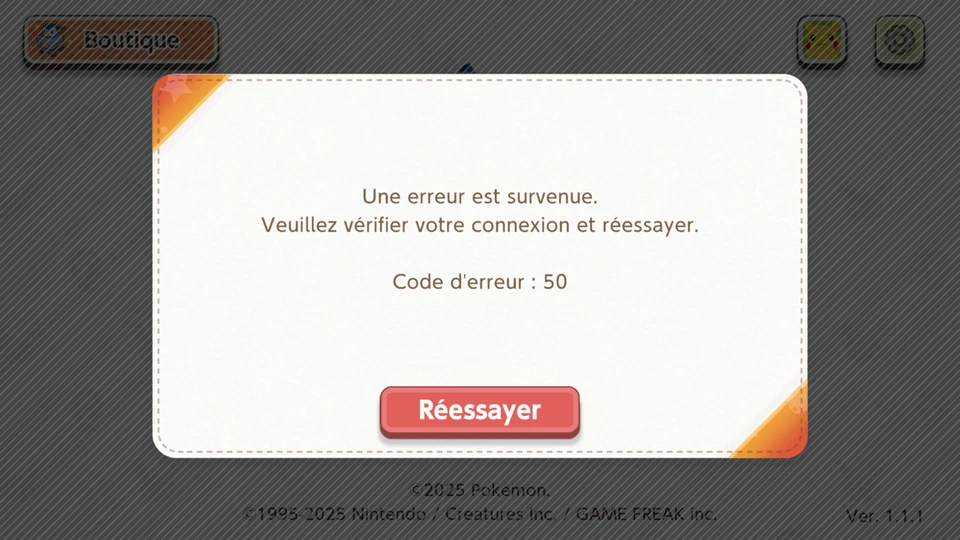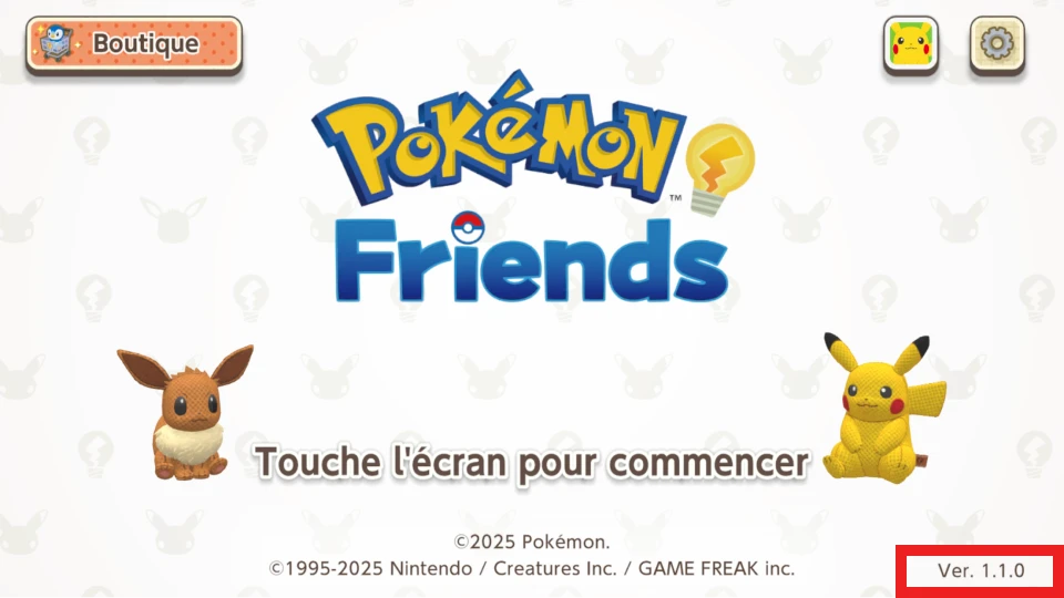 8. Les joueurs et joueuses ayant acheté du contenu téléchargeable peuvent restaurer ce contenu en se rendant dans « Boutique » en haut à gauche de l’écran d’accueil de Pokémon Friends.